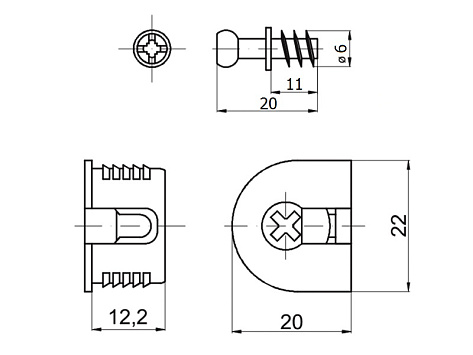 Комфортное затягивание отверткой, благодаря специальной конструкции эксцентрика, - натяжного элемента, возможен доступ сверху через сквозное отверстие 10мм. Например, в нижних полках с ограниченным доступом для затягивания эксцентрика снизу, - возможен вариант затягивания сверху.